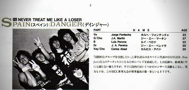 J.A. Martin: Eso fue idea de Luis Perona, que se enteró de que había este concurso y nos lo propuso. Era a nivel mundial, pero se hacía por países. Había que presentar una maqueta con un par de temas, unas fotos y un pequeño dossier. Nosotros acabábamos de empezar, y teníamos una pequeña maqueta grabada en los estudios M-20, con Marshall Monroe, grabada con José Manuel Fernández a la batería. Decidimos presentarnos al concurso a ver qué pasaba y nuestra sorpresa fue que entre 300 maquetas que se enviaron, a nivel nacional, eligieron a 6 y una fue la nuestra. Hicimos una final en la sala Jácara, en la que estaba también Extremoduro, que quedaron terceros. Tocamos y nos lo llevábamos. Y el primer premio era ir a Japón a la final mundial.