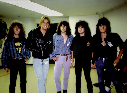 José Antonio Pereira: …Y nosotros hicimos la típica jugada de salir de espaldas y luego girarnos al empezar el tema. Todos de espaldas menos yo, que era el batería y estaba de cara al público. Así que cuando la tarima empieza a salir de la zona resguardada y empieza a verse a toda la gente en las gradas, con el Budokan lleno, era como una ansiedad tremenda, y yo les decía a estos: “¡cuando os deis la vuelta os vais a cagar!”. Estaba lleno, y además no es lo mismo 17.000 personas en una explanada, donde ves sólo hasta cierto punto, que en una grada donde ves a todo el mundo. A mi me sorprendió que nuestra inexperiencia y juventud hizo que hiciéramos cosas que ahora no haríamos. Y salimos como si aquello fuera lo normal. No teníamos nervios, aunque sí ansiedad por tocar. Yo vi a gente de otras bandas nerviosa de verdad, de temblarles las manos y estar asustados. Sin embargo, nosotros estábamos exultantes, lo que queríamos era salir allí y ponernos a tocar. De hecho, se ve en una grabación que hay en vídeo que estamos como si fuera el pan nuestro de cada día. De jurado estaba Bon Jovi y Joey Tempest y, claro, para nosotros era increíble.