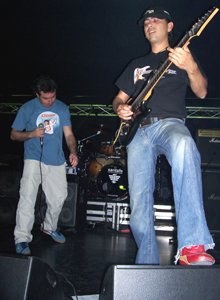 Era el momento de las presentaciones, por si alguno o alguna no sabía los nombres de los que estaban ahí arriba repartiendo cera de la buena. Jesús a la batería, Bona (“El Pelón”) a la guitarra, Ángel al bajo (marcándose el principio de “(Anesthesia) Pulling Teeth”), Tote a la otra guitarra (con la gente gritando: ¡¡¡¡Mucho Tote, mucho Tote…!!!, y éste presentaba a Javier.