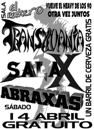 Eran las 1.15 h., así que la espera entre Abraxas y Sala X, fue de sólo un cuarto de hora que se pasó volando bebiendo y departiendo con la gente. “Reencuentro” y “Resaca” fueron los dos temas con los que arrancaron. Sonando el segundo a una mezcla de Rock urbano con Heavy Metal. El tercero, y para levantar más a la gente, fue la versión de “Tan fácil” de Barricada, no convenciéndome el solo de guitarra.