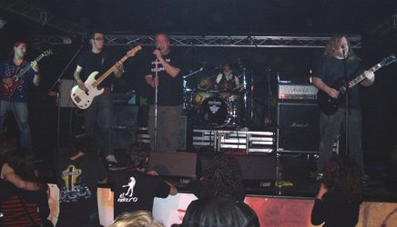 Ellos ya habían pisado las tablas de la sala anteriormente, en el primer tributo al Rock español y abriendo para WarCry (ambas descargas contadas por aquí). Siendo sincero en su época poco me gustaban, teniendo la mayoría de letras cachondas, más de banda Punk que de Heavy, y como músicos andaban muy verdes. Por aquellos tiempos eran David (voz), Manolo y José (creo) a las guitarras, José V. (bajo) y Paco (batería). Grabaron algunos temas pero en plan casero y finalmente terminaron separándose y cada uno haciendo su vida.
