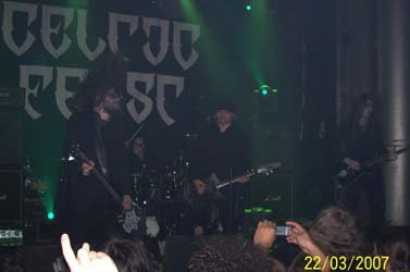 Pocos minutos después salía la reencarnación de Celtic Frost en el siglo XXI, y los que grabaron su disco de retorno, “Monotheist” (Century Media, 2006): los clásicos Thomas Gabriel Fischer “Tom Warrior”, Martin Eric Ain, y el nuevo baterista Franco Sesa, acompañados para la gira europea por el guitarrista V. Santura (Dark Fortress), todos con pinturas sobre sus caras (el que menos Tom Warrior, con los ojos negros nada más).