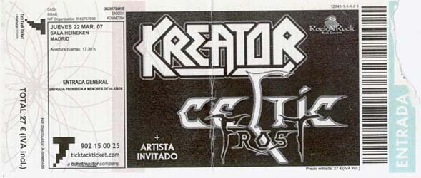 Kreator son una apuesta sobre segura en directo, pueden estar mejor o peor, pero nunca defraudan. Esa noche disfruté, ya que como he dicho hacía tiempo no los veía, pero tampoco fue uno de los mejores conciertos que les he visto. Comprobé que en Madrid tienen una plaza ganada. A ver la próxima vez que los veamos, eso sí, en algún lugar decente. Habrá que empezar a pensarse acudir a conciertos organizados por los que engañan y también pensarse si merece la pena ver y escuchar algo en “salas” muy deficientes.