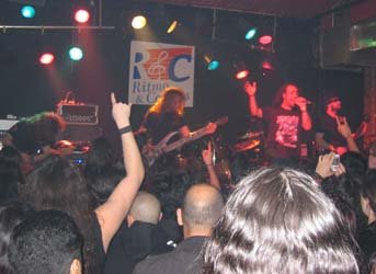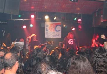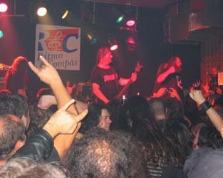 Después había que celebrar el grandioso concierto, así que el amigo Monraymon, junto a un colega de Euskadi, mis paisanos Víctor y Carmen, y servidor, fuimos al buen pub “Refugio”, para desengrasar un poco de violencia sonora. Creía que ahí sería el final de la noche, pero el joío de Monraymon, tras dejar a su colega en las inmediaciones de su hotel, nos “engañó” vilmente y acabamos en Vallecas, en el Vkaos y remate en… Excalibur, para variar. Siendo en este último sitio donde nada más entrar nos encontramos a todos los músicos de Exodus.