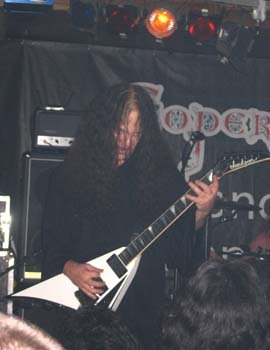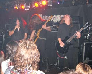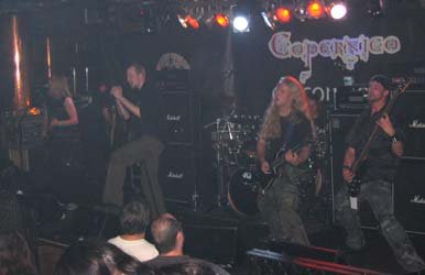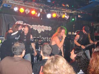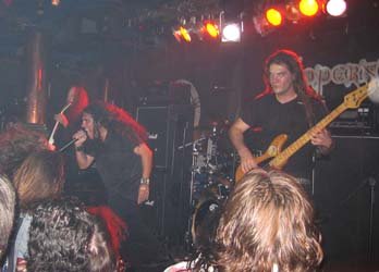 Las 22.30 h. por mi reloj y mientras sonaba una intro fueron saliendo el baterista Eric Elkins (Cryptkicker, All You Fear), el guitarrista John Comprix (Spawn, 13 Faces, ex-Winters Bane), el bajista Dennis Hayes (ex-Winters Bane, Seven Witches) y ocupando su lugar sobre las tablas. No apareció el otro guitarrista Dwane Bihary (Missing Skin), al parecer había dejado la banda recientemente.