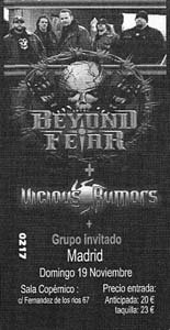 Me pareció muy triste que un grupo con la historia de Vicious Rumors congregara en Madrid alrededor de 150 personas (y creo que me paso en la cifra). Si “Neury” no resbala en recuerdos la banda por primera vez pisó suelo español en la gira histórica junto a Death Angel y Forbidden que recaló en Barcelona en 1990; suspendiéndose años después una gira que iban a realizar junto a Riot, Metal Church… ; también su no comparecencia junto a Rage en la gira del 2001 (iban a tocar en la misma sala de esta noche, aunque cuando se llamaba Revolver); y su presencia comentada en el festival granadino del presente año (haciendo doblete al final en dicho festival). Ese mismo domingo noche tocaban Cradle Of Filth en la sala Heineken, pero sinceramente no creo que le quitara apenas público a este concierto. Muy mal respondió el público madrileño ante el concierto, escuchándose y leyendo luego a la gente quejarse de que siempre vienen los mismos grupos a tocar y tal y cual. Una vez más se demuestra que la gente se deja llevar por las modas y que mucho se habla pero poco se actúa.