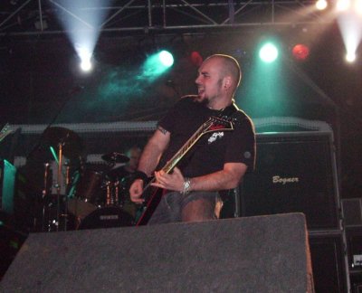 Tras estos dos temas, llegaba el momento de presentar a la audiencia algún tema nuevo, del que será su próximo disco, que próximamente estará en las tiendas. Como bien dijo Morti, regalaban “Dame aire”, buen tema, con cambios de ritmo y potentes riffs de guitarra. Tema contundente, quizá un poco mas potente que los temas de su primer disco. Y para finalizar dejaron “Donde estás” del primer disco y otro tema nuevo que supongo que llevara de nombre “No me dejes solo”, gran tema también, donde destacó de nuevo el batería Dani Pérez.
