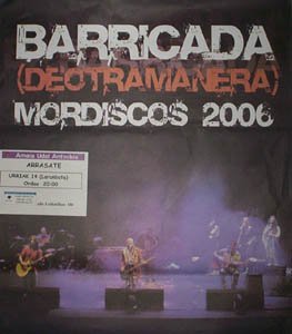 El pueblo guipuzcoano de Arrasate tuvo la suerte de poder ver a Barricada en acústico (De Otra Manera) y los Barri no fallaron y dieron un gran concierto en este formato. No se llenó el Amaia Antzokia de Arrasate, fue una lástima, pero los que allí estuvimos salimos muy contentos y satisfechos. Como curiosidad, resaltar la asistencia al concierto de músicos de la escena de Euskadi y que el acústico no varió apenas de lo ofrecido en el DVD “Mordiscos”.