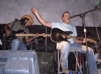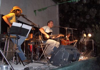 Ya se sabe como es esto de las fiestas. Entre unas cosas y otras y tras ser previamente dopados con un asado de cordero cortesía de la Organización, eran las 2:30 de la madrugada cuando los componentes de Punto de Mira se subían al escenario. Habitualmente, los sets acústicos de la banda están interpretados únicamente por Juan Olmos y Javier Mira, pero en ésta ocasión, y por vez primera, iban a participar los otros dos miembros de la banda, Javier Colmenarejo “Cheewaka” al bajo y Ernesto Sánchez a la batería.