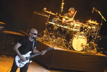 Cambio de instrumentos, pasando LaRue del bajo rojo a uno azul y Henson empuña una guitarra eléctrica, para interpretar “The Extremist”, con empleo de armónica por parte del pelón y luciéndose en un trozo Campitelli. Se juntaban Satriani y Dave, tocando éste su mástil tanto por arriba como por abajo.