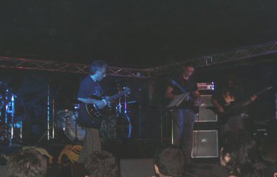 Sigamos con lo que importa, la música. Continuaban sin respiro, tocando un tema tras otro, y defendiendo sus dos últimas obras (más la penúltima, “Desde el fondo del abismo” – Boa Music, 2000). Esto es digno de alabar, ya que no sólo viven del pasado, aunque como he dicho en el principio, si no editan nada, deberían ir cambiando el repertorio. Con “El Crack” Nacho se iba al lugar de Paco Laguna (lado izquierdo de las tablas). Durante este tema el vocalista se coló en la letra.