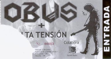 …y para el 9 de junio se tenía previsto que tocaran Strawberry Hardcore, pero finalmente no pudo ser y en su lugar se contrató a los incombustibles Obús, quedando así un fin de semana metalero en Almería con la visita de los dos grandes pilares del Heavy Metal patrio de la década de los 80. Al día siguiente tocarían Barón Rojo, sacando a la venta la organización un bono con las dos entradas en el que te ahorrabas algo de dinero. Servidor no pudo acudir a ver a los Barones al día siguiente ya que coincidía con nuestra fiesta del V aniversario del webzine, celebrada en Madrid con las bandas Deidre y Punto de Mira. No obstante el amigo y colaborador Wsnake acudió a ver también a los De Castro y cía. y próximamente su escrito verá la luz, o surcará el espacio cibernético.