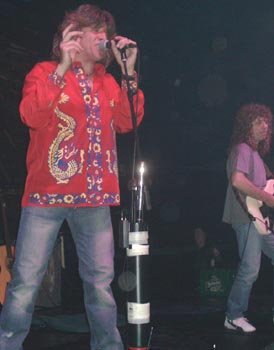 Tardaban algo entre tema y tema en las últimas coplas. Molina comenzaba a soplar su flauta, acompañado por sonidos pregrabados, y nos divertía con la melodía de los dibujos de “Dartacan y los tres mosqueperros”, luego parte de la pieza clásica “Icaru´s dream suite op.4”, juego entre la peña y la flauta, solo del instrumento y unir a “El tren azul”, y cuando se dispone a cantar no se oye… ¿otra vez el incompetente de la mesa?… pues no, esta vez fue fallo de Molina, que no había abierto su micrófono, y Gorka lo mira y sonríe como diciéndole: “¡ya te vale!”. El tema lo alargan, con solo de flauta y juego con el público, y la melodía de la tradicional canción de “La cabra”… cantando la gente la letra. Bestial la parte instrumental y final con “silbato” de tren hecho por la travesera de José Carlos.