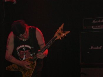 La atracción esa noche, Jari Tiura, ofrecía la imagen del cantante clásico de Hard Rock, sorprendiéndonos a todos con el perfecto estado de forma, y las tablas que parecía tener. Conectó perfectamente con el público. Como una apisonadora cae “Are You Ready To Rock” y aquí es donde pasa lo de siempre, nos acordamos de ese feeling especial de Gary Barden, algo que no se puede evitar, pero que al final casi olvidaríamos gracias a la entrega de Jari, que estuvo bien, muy metido y dejando sus marcas de registros vocales en esas influencias que a todos nos matan, unas influencias que agradecí enormemente, en todo momento se notaba que era un admirador del estilo de voz de DIO, hasta en sus marcados gestos era de esa escuela, los cuernos estuvieron presentes toda la noche.