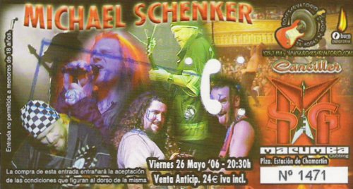 De los teloneros, ni enterarme que había, la gente no tenia ni idea, y pensé que no había “previo” a la salida de Michael Schenker anunciada a las 9 de la noche. Después me enteré que hubo telonero, el grupo en cuestión: NIKKI PUPPET, alemanes de origen con una formación de cantante y bajista femenina y guitarra y batería masculino. No os puedo contar nada, porque en ese momento estaba abasteciendo el estómago, así que dejé que dieran las 8.45 para acercarme a la entrada de la sala, (desde aquí, desde esta página mando un caluroso abrazo a mi fiel amigo Marco de la Hoz que hizo posible que accediera a un lugar privilegiado de la sala para poder dar cuenta de este concierto) allí pude encontrarme con un añorado Berruga, con Lynott, y casi en la misma puerta con el alacrán Edurocks