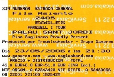 El set, un grandes éxitos, en formato doble, por la estructura del show. Abrieron con “Take It Easy” y cerraron con “Desperado”. Entre medias, “Witchy Woman”, “One Of These Nights”, “Life In The Fast Line”, “New Kid In Town”, “Peaceful, Easy Feeling”, “Heartache Tonight”, “Take It To The Limit”, “Lyin’ Eyes”, “Tequila Sunrise”, “The Long Run”, “Love Will Keep Us Alive”… y como no, la inevitable “Hotel California”, con una curiosa introducción en clave mariachi, a cargo del trompetista, ataviado para la ocasión, no podía ser de otra manera, con un sombrero mejicano. La sola mención del título, por el álbum, en la presentación de otro tema, en los primeros compases de la noche, tuvo una rápida respuesta sonora por parte del respetable.
