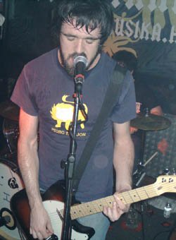 Cambio de guitarra, dirigirse hacia los pocos que estábamos allí con un “¡¿Qué pasa, Almería? Somos Berri Txarrak, de Nafarroa. Gracias por venir!” y continuar con “Stereo” y seguida “Ebidenteegia” (“Demasiado evidente”), ambas del “Eskuak / Ukabilak” (Gor Discos, 2001). Todo un espectáculo ver a Gorka moverse espasmódicamente, cual electrocutado o demente, y al bajista Mikel López menear sus greñas al ritmo de la música.