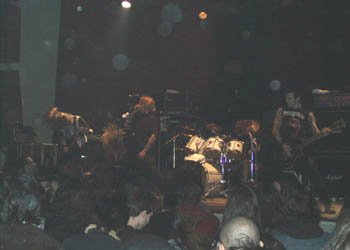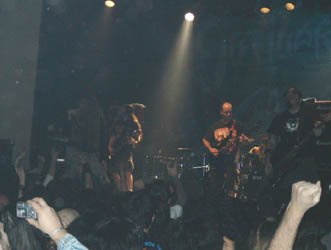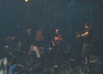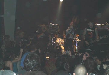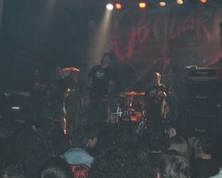 Pedía aplausos para Samael y Obituray, y presentaban una nueva canción, “And If I Lose, Welcome Annihilation”, incluida en su tercer y último CD, “When wolrds collide” (Century Media Records), que aún no había sido editado cuando fue el concierto. El guitarrista de la derecha (tatuado en brazos) se movía frenéticamente al estilo hardcoriano.