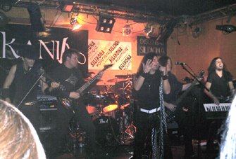 Sonando al principio las teclas, la voz y el violín hacían “Más allá de las estrellas”. Después Ángel pasaba a presentar a sus compañeros, al del sombrero: Miguel Ballesteros (violín); a su diestra, el señor tan grande: José Luís Godoy “Godo” (guitarra; ex–Saurom Lamderth, Gas Ciudad, Melodía); detrás, el motor: David Ayala; el señor de las cuatro cuerdas: José Antonio Gallardo; el señor teclista: Barny; y todos juntos Arkania, y se volcaban con “Conquistador”, blandiendo una espada el cantante.