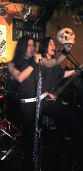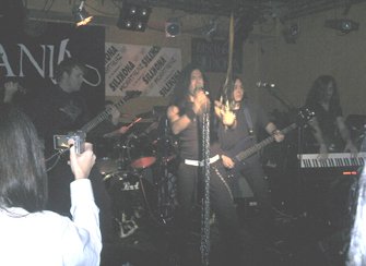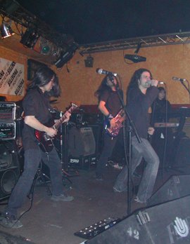 El guitarrista se ponía un gorro de bufón, que pronto se quitó, y dedicaban a la gente que rula por el corazón de Madrid “Cuentacuentos”, tema pegadizo de su última demo, con coros del bajista José Antonio Gallardo (ex-El Décimo Sueño, Beholder) y con una aparición de un personaje maquillado y con una especie de túnica con una calavera que se la pasó al cantante y éste la alzó.