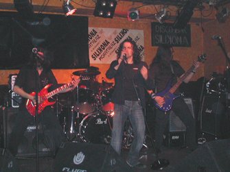 A eso de las 22.19 h. Jon Marín volvía a ejercer de presentador. Una intro dio paso a “Magia blanca” (primer tema de su reciente segunda maqueta, “Lucifer”), aunque en su comienzo apenas se escuchaba la voz de Ángel Santamaría (ex-Velldur, Tasmania). “Cruzado” fue la siguiente de su descarga, y aquí ya comprobamos la enorme personalidad del vocalista, echándose a sus espaldas la actuación, y pidiendo con gancho a la gente que botara.