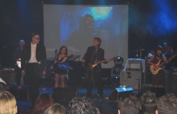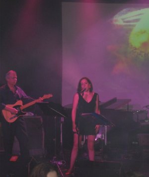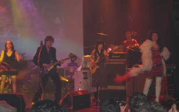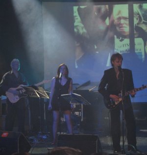 Del escenario sólo se podía ver un trocito de batería, los cables y algún micro, ya que estaba parcialmente amurallado con múltiples cajas blancas de cartón a las que se les veía el celo. Joder… habiendo de ese que pega por los dos lados como hay… Dos pantallas gigantes a ambos lados y una un poco más grande en el fondo acababan de componer el escenario. Y el público, pues bastante variado, jóvenes muy jóvenes, mayores muy mayores y la media que sería de unos cuarenta tacos, más o menos. Casi todos creme de la creme barcelonesa, pijos hasta reventar y bohemios de gorros de lana. Algún garrulo también había, a parte de mi mujer y yo, conste. La sala estaba prácticamente llena cuando, a eso de las nueve y cuarto, se elevan las lámparas de lágrimas hacia el techo y aparece en las pantallas una presentadora virtual llamada Raisa, que nos comunica, con Norah Jones sonando de fondo, que el show comenzará en cuatro minutos, a la vez que se muestra un reloj digital en pantalla marcando la cuenta atrás. Justo en ese momento nos dimos cuenta de que sentarse sobre un sólo glúteo no es nada cómodo, y es que el asiento de los taburetes era diminuto, así que decidimos quedarnos de pie y acercarnos un poco más al escenario.