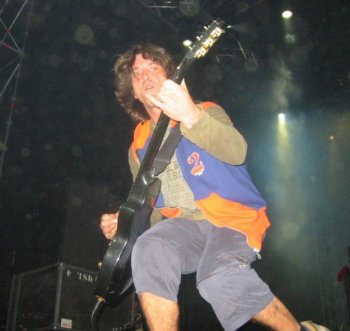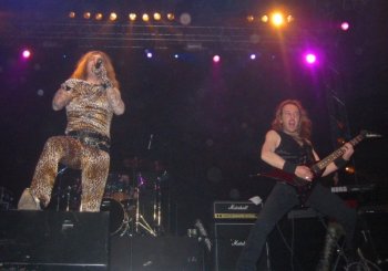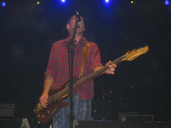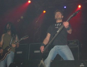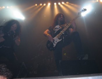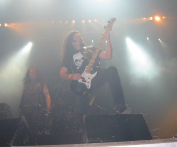 Lamento decir que no voy a poder comentar la actuación de la banda con el detalle que hubiera deseado, ya que sucedió algo muy desagradable que me impidió concentrarme en lo que tenía delante. Apremiado por el cansancio, decidí subir a la grada para seguir desde allí el desarrollo del concierto, justo en frente del escenario. Desde esa posición el sonido era algo peor pero, sinceramente, ya no me tenía en pie. A los pocos minutos, sentí un escozor terrible en la garganta y en los ojos, provocado por algún tipo de spray tóxico. Todos los que estaban cerca de mi sintieron lo mismo, evidentemente, y tuvimos que salir corriendo para alejarnos de allí porque nos era imposible siquiera respirar. No sé quien sería el inconsciente que provocó el incidente, pero dentro de todo lo malo podemos dar gracias a que la grada estaba ya casi vacía, porque de haber sucedido con más gente, la avalancha que se hubiera producido hubiera sido muy peligrosa.