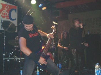 Juanmi presentaba del primer disco “Todos los ayeres”, con la voz de Alex muy “helloween-iana”. Luego el cantante presentaba a sus compañeros: Javier Canseco “la Bestia” (¿otra más?, ¿no era Leo de Saratoga?; ex-Tragedy) al bajo, y del cual hay que mencionar su movilidad y sus posturas, aunque a servidor no le hicieran mucha gracia; Joaquín Arellano “El Niño” (ex–Ñu, Saratoga, Muro) a los tambores, y que se unió con éstos tras la pequeña demostración de bajo de seis cuerdas; luego se les unía “Peter Candle”, Pedro Vela, y el teclista Juanmi; y el rubio se presentaba a él mismo. “La luz interior”, otra de las pocas concesiones a su segundo disco, fue la siguiente, al igual que “La huella del tiempo”, con estilo power metalero.