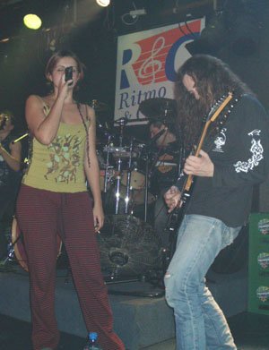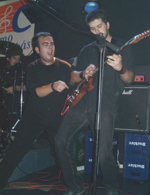 Abrieron con la hard rockera “Bob Hope”. La voz del guitarrista Miguel no se oía, resultado de que no le habían abierto su micrófono. El seis cuerdas Suso iniciaba subido en una de las mesas la “acedeceniana” “Mummy”, con mucha movilidad por parte de los dos guitarristas.
