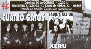 Alrededor de las 22 h. volvía a salir Jon Marín para lanzar al público CDs de Xeru y presentar a SADIE´S ACTION. Tercera vez que veía a la banda, y segunda vez que los veía en el mismo sitio.