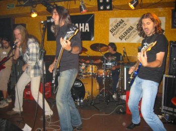 Comenzaron el concierto con “Que caiga el telón”, un tema muy apropiado para abrir fuego, y enseguida nos dimos cuenta de la diferencia de nivel existente con Damablanca, ya que Al Otro Lado es un grupo mucho más hecho, con músicos más curtidos que hacían sonar al grupo de forma mucho más compacta, sobresaliendo la buena voz de Javier Domínguez. El resto del grupo suena a muy buen nivel, los dos guitarristas (Diego Rodríguez y Fernando Jorge Muñoz) simultanean labores solistas dándole mucho colorido a los temas, apoyados en la buena base rítmica formada por Sergio Llorente “el Rata” al bajo y José María Cobas a la batería.