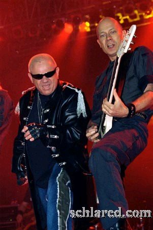 Habíamos hecho una especie de porra, intentando adivinar el tema de inicio del concierto y ninguno acertó. Ni “Fast As A Shark” ni “Flash Rockin´ Man”, sino “Starlight”. Aquellas las tocarían más tarde. En cuanto oímos las guitarras, nítidas, cortantes y muy metálicas, sonreímos. El sonido más clásico de los alemanes. Fieles a su pasado, iban pseudo-uniformados. Udo llevaba incluso un enorme chaquetón de gala de corte militar. La formación, la que grabara “Balls to the wall”, excepto el batería Stefan Kaufmann, por sus conocidos problemas con su espalda. A recordar, el mencionado Udo Dirkschneider y su ronca voz, en su línea, cumplidor. Los guitarras Wolf Hoffmann, pelado al máximo, y Hermann Frank, sólidos, compenetrados y efectivos más que efectistas, nunca destacaron por su virtuosismo. Al bajo Peter Baltes, matador, y la batería estaba a cargo, por hoy, del ex-UDO Stefan Schwarzmann. Todo queda en casa. Conociendo la labor actual del anterior batería, el otro Stefan, como guitarrista en UDO, podrían haberle dado la oportunidad de salir junto a sus ex-compinches. A la Maiden, tres guitarras. Sin ningún tipo de artificio, sólo las luces, nos trasladaron a los