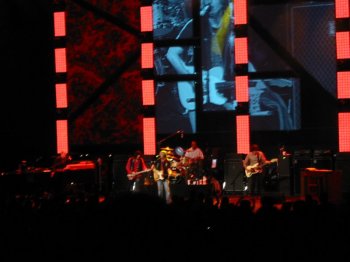 Cambio de guitarra eléctrica por acústica y es el turno de otra de sus favoritas, “Angel´s Dream”. El auditorio es enorme y no es el lugar más indicado para una canción tan íntima, pero aún así consigue que te llegue la sinceridad y la transparencia de esta sencilla declaración de amor. Sigue con la acústica y nos presenta una de sus nuevas canciones, “Melinda” (que ya viene en el DVD “Soundstage”). La canción es un clásico R´n´R in crescendo, en la que hay un protagonista absoluto, el enorme Benmont Tench, que antes omití voluntariamente. Puede que ésta sea la canción donde más brilla en toda su larga carrera. El solo central de piano es trepidante y hasta el siempre discreto Benmont se levanta y tira su chaqueta. Temazo.