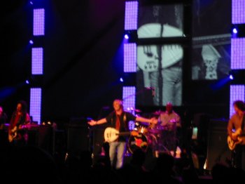 Cuando consigue que el público le deje hablar (y se toma un respiro) nos presenta la primera versión: “I´m Crying” de The Animals, una de sus habituales. Perfecta ejecución y mucho estilo a la hora de llevársela a su terreno. Aprovecha y nos presenta a los Heartbreakers. Todo lo que se pueda decir de un grupo es poco para estos tíos. Pocas bandas hay con más personalidad, con más presencia que Steve Ferrone o más versatilidad que el cachondo Scott Thurston. Y Ron Blair, ahí sonriente, cubriendo la espalda de su amigo desde el instituto con el que grababa maquetas bajo el nombre de Mudcrutch en el salón de la casa de sus padres cuando éstos no estaban.