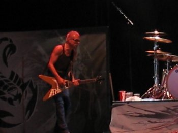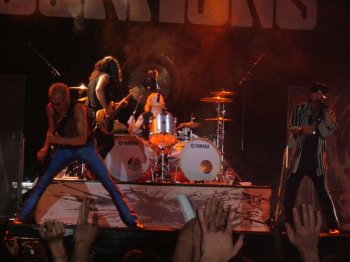 El concierto estaba cubriendo todas nuestras expectativas. Una brillante “The Zoo” nos mantuvo felices durante un buen rato, con el consabido y extenso pasaje instrumental en el que Matthias Jabs demuestra su dominio del “Voice-Box”, ese curioso y conocido sistema que envía el sonido producido por la guitarra por un tubito a la boca del guitarrista para que éste la utilice como caja de resonancia. Tan efectivo como siempre. El resto de la banda raya a un nivel muy alto. El bajista Pawel Paciwoda, el último en llegar a la banda, cumple con nota su nivel y se le ve plenamente integrado en la banda, y James Kottak sigue siendo una máquina a la hora de tocar la batería.