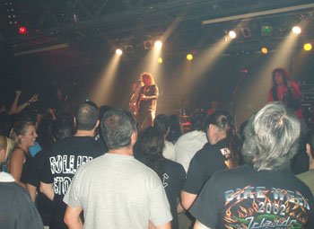 El escenario soso de cojones, un simple telón negro al fondo y punto. Meniketti saluda al público, se cuelga al hombro su inseparable Gibson Les Paul, chapurrea un “buenas nouchis Barseilona” que el público, loco, responde con unos “¡guayanti! ¡guayanti! ¡guayanti!, etc.”, el comportamiento humano en masa es alucinante. Todos los componentes de la banda en su sitio, joder el Haze está tela de viejo, luces, calma, tranquilidad… ¡“Open Fire”! ¡Sus muelas!, ¿sabes el escalofrío que entra con la última gota de la meada mañanera?, en el caso de los hombres claro, ¿a las mujeres les da ese escalofrío?, en fin, pues eso me entró por el cuerpo al escuchar los primeros acordes.