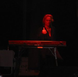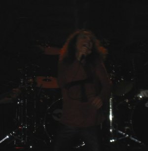 A las 22:15 se apagaron las luces para la actuación de Dio. Hacía rato que habían desplegado un telón con la portada del Holy Diver, y al quedarnos a oscuras unas luces rojas iluminaron los ojos del diablo representado en el telón. Uno tras otro, los músicos fueron tomando posiciones en la tarima. El rechoncho Simon Wright tras la batería, el incombustible Rudy Sarzo al bajo, con una envidiable imagen jovial, Craig Goldy a la guitarra (con algún kilo de más) y Scott Warren a los teclados. Formación de lujo, sin duda, que es toda una garantía de calidad.