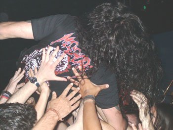 Avulsed era la primera ocasión en que visitaba Almería y encontraron una sala escasamente poblada como ya digo, pero como es habitual, el carisma de Dave Rotten brilló. Y no sólo porque supo subir los ánimos, sino porque incluso tubo la desfachatez de saltar un par de veces sobre el realmente escaso público que agitaba sus greñas bajo la tarima y crear momentos de gran salvajismo.