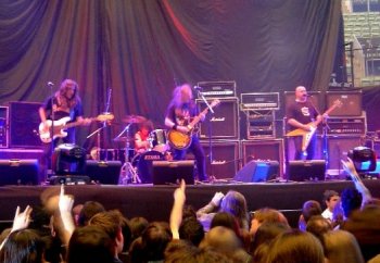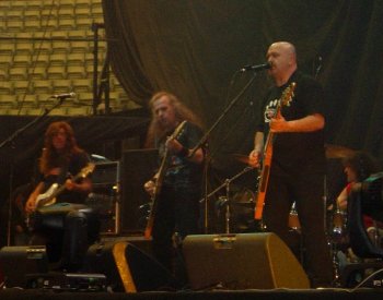 Iban a por todas. “Resistiré” levantó al público de sus asientos como no suele conseguir nunca un grupo telonero. Evidentemente, este no es un telonero al uso. Personalmente creo que Barón Rojo tienen mejores canciones en su repertorio, pero es difícil igualar la pasión que levanta “Resistiré” en sus conciertos. Sin bajar un ápice su intensidad atacaron con un cañero “Volumen brutal”, al que, sin respiro, siguió “Concierto para ellos” coreado por la mayoría de público que, puesto en pie, en absoluto ignoraba la actuación de la banda. El tema lo fusionaron con “Hermano del Rock and Roll”, cantado por Armando, y el final fue extraño, ya que no es habitual terminar un concierto con una instrumental, aunque yo creo que “El Barón vuela sobre Inglaterra”, con el que terminaron el concierto, fue simplemente el tema con el que se les acabó el tiempo asignado.