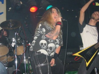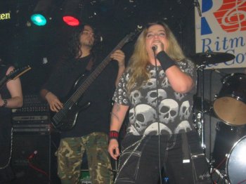Los primeros en salir a escena fueron Onírica, un grupo muy joven del que ya os hemos hablado en alguna ocasión. Practican una especie de Gothic Doom Metal melódico (me vais a perdonar, pero con estas etiquetas me pierdo) en el que destaca la presencia de Aroa, una cantante con buenas facultades vocales que cuando pula un poco su estilo puede dar bastante que hablar.
