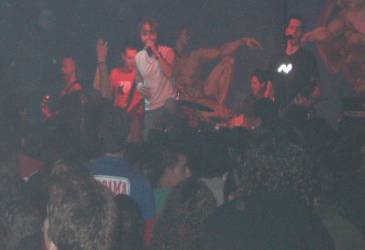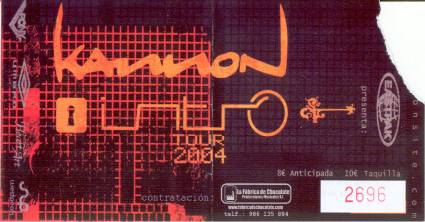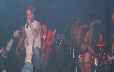 Pasaban unos pocos minutos de las 0.30 h. cuando los cuatro músicos de KANNON bajaban tranquilamente a escena, cogían sus instrumentos, ocupaban posiciones y daban comienzo con “La llave”, primer tema del disco que están presentando en directo, “Intro” (2004). El cantante Cody Mc aparecía arriba de las escaleras (que llevan al camerino) tirando pegatinas de la banda, para luego llegar a su puesto con su micrófono inalámbrico y ver a la gente volcada cantar el comienzo de la canción (tema que me gusta bastante). El guitarrista David se encargaba de los coros. Sacando cuernos el vocalista.