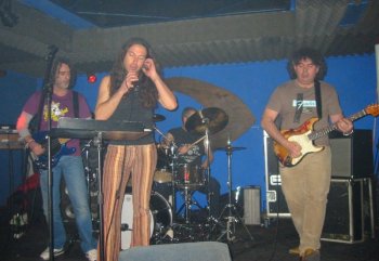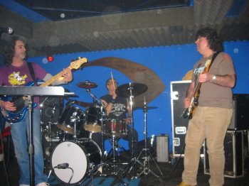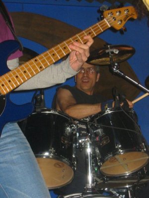 Toni Menguiano estaba un poco frío, y aunque andaba bien de voz, le costó animarse un rato. Y Tony Ferrer manteniendo la base sólida sobre la cual se explayaban sus compañeros. Me recordó mucho a Roger Glover, no sé si por lo evidente del caso, su forma de moverse, su barba poco poblada o todo a la vez, el caso es que no le saqué ni un solo defecto en toda la noche.