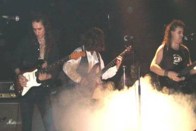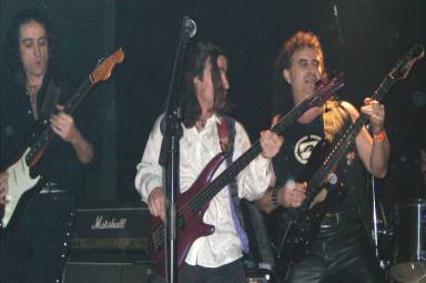 Nunca pude imaginar que aquel grupo que descubrí y escuché hacia mitad de los 80 gracias al programa radiofónico “La Emisión Pirata” pudiera llegar a verlo en vivo. Me alegré bastante cuando hace unos años navegando por la red me enteré que habían vuelto tras su separación en 1987. Vicente Feijóo (voz / guitarra y alma mater del grupo) se hacía acompañar en la actual etapa por otro gran músico, el guitarrista Rafa Játiva (habiendo formado en Sable). Creo que todo amante del Heavy Metal hispano de calidad debería tener entre sus discos favoritos “¿Ángeles o demonios?” (1982) y “Herederos de un imperio” (1985), porque ¿acaso temas como “Llega el Castigador”, “Cuero y cadenas”, “El tren para el infierno”, “Herederos de un imperio”, “Promesas”, “Ojo por ojo”, “Reacciona”… no tienen la misma calidad que los clásicos que todo el mundo conoce del Rock patrio?, pienso que la tienen igual o más. Pero volvieron y no para vivir de las rentas, en directo mezclan temas históricos y clásicos con composiciones de sus dos últimas obras, sin resentirse ni decaer para nada el concierto.