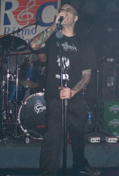Me gustaron bastante, sonaron atronadores, con un vocalista con mucha personalidad, vociferando cual poseso, y utilizando, en ocasiones, registros guturales. El bajista y guitarra me sonaban mucho y luego caí en que formaron en Only Blood (grupo que vi en esa misma sala en un festival en junio de 2003 y comentado en su día por aquí, también organizado por Mondongo)