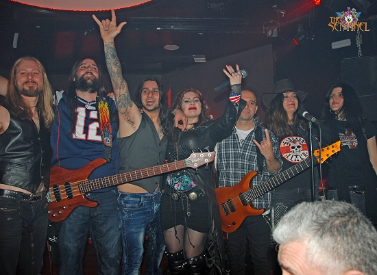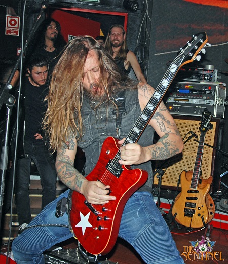 La teoría decía que en ese momento debían despedirse para volver y hacer el bis previsto, pero la premura de tiempo de la sala evitó (afortunadamente) que hicieran el habitual paripé y directamente acometieron el último tema de la noche, con la última invitada prevista: Diva Satánica (cantante de Bloodhunter). Con ella, el tema que cerró definitivamente el concierto fue “Black Snakes”, rescatado de aquel primer EP “Spiritual Rock”. La combinación de las dos voces fue espectacular, sobre todo en la primera parte del tema, más tranquilo, ya que a partir de que la banda entra en tromba, la voz de Diva quedó apagada por falta de potencia en su micrófono, un defecto que les persiguió todo el concierto. Aun así, su conocida voz gutural fue un complemento espectacular para este final de concierto.