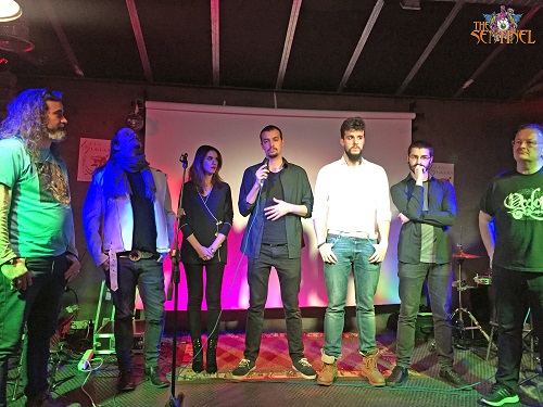 Tras el visionado del vídeo-clip, y mientras degustábamos un refrigerio cortesía de la organización, el grupo se preparó en el escenario para ofrecernos un pequeño set acústico de 5 temas con el que poner la guinda a la presentación. En él pudimos disfrutar, en su formato más íntimo, de dos temas de este nuevo disco, “The Rain Train” y una versión de “Echoes Of Delusion” algo más corta de lo que aparece en el disco, más otros dos de su primer trabajo, “Jester”, como fueron la pegadiza “En cualquier bar” y “On Your Own”. Además, intercalaron una preciosa versión de “Space Oddity” de David Bowie, dejándose en el tintero un prometedor “Hotel California” que utilizaron en la prueba de sonido.