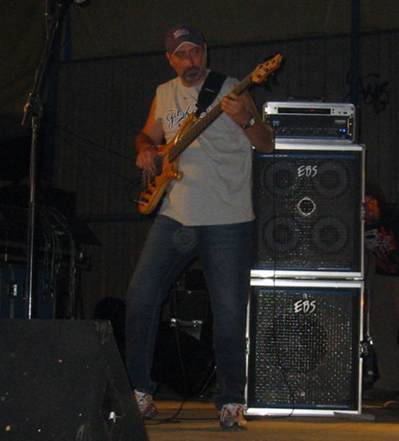 Llegamos a una hora prudencial, esperando encontrarnos al primer grupo a punto de salir a escena. Y cuál no sería nuestra sorpresa cuando al acercarnos al escenario vimos la imponente figura de Eduardo Kinderman sobre las tablas. ¿Qué pasa aquí? Pues que en esos momentos se estaba efectuando la prueba de sonido de Julio Castejón y los Trípodes, y la cosa no pintaba muy bien. Me acerqué al escenario y por señas me identifiqué ante Eduardo, que me espetó a que esperara a que la prueba finalizara para que pudiéramos hablar tranquilamente.