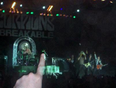 El bis hasta ahora estaba siendo igual que el de agosto, y me pregunté, ¿por qué no meter las baladas antes y acabar aunque sea con un solo tema cañero?. Bueno, el “huracán” volvió loco/a a más de uno/a. Alargando el final del tema, acabando Meine y Schenker en la tarima de la batería. Yo creía que ya acababan, pero no, con acústicas hicieron “When The Smoke Is Going Down”, pieza que está muy bien para relajarse y demás, pero ¡¿para acabar un concierto?!, aunque parece que a muchos/as no les importaba, cantándola y concluyendo con un final alocado. Mostraron una sábana que le habían tirado gente de Barcelona con un extenso texto en inglés que no pude leer bien. Ante el clamor de la gente se despedían definitivamente quedando diez minutos para las dos de la madrugada.