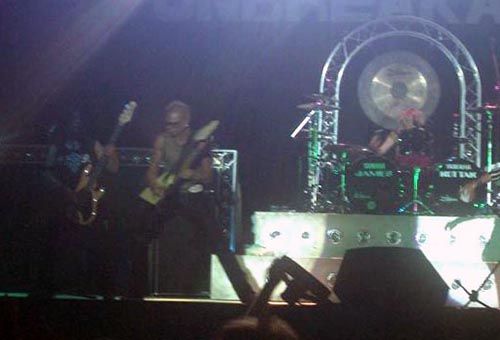 Irrumpía la comercial “Tease Me Please Me”, volviendo el rítmica a demostrarnos que es todo nervio, poniendo su guitarra en vertical y luego girando sobre si mismo ¿está en su segunda juventud?. Descanso para todos menos para el aporreador, golpeando con contundencia sus parches (hay que ver lo que ha ganado el grupo con el americano, yo no era muy simpatizante del estilo plastoso de Rarebell), levantándose y tocando como un poseso sus platillos y todo lo que pillaba alrededor (la estructura metálica del gong), el típico juego con el público de responder ante cada ritmo y acabando su espectáculo en pie sobre la batería. Esta vez no se rompió ninguna botella en la cabeza, como cuando lo vimos el verano pasado.