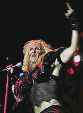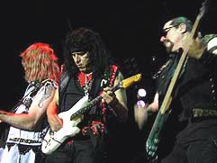 Cuando entraba al campo de arena (sobre las 23 h.) Twisted Sister estaban tocando la balada “The Price”. Acabándola Dee Snider de cara y pegado a la batería de A.J. Pero. Tras la relajación enlazaron con “Burn In Hell”, acompañada por luces rojas, y molestos acoples de la guitarra de Jay Jay French que no paraba de girarse, de vez en cuando, hacia un bafle. También noté flojos los coros al principio.